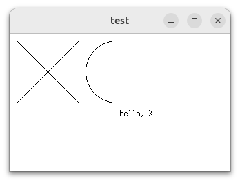 XDrawString(display, window, context, 160, 120, "hello, X", 8);